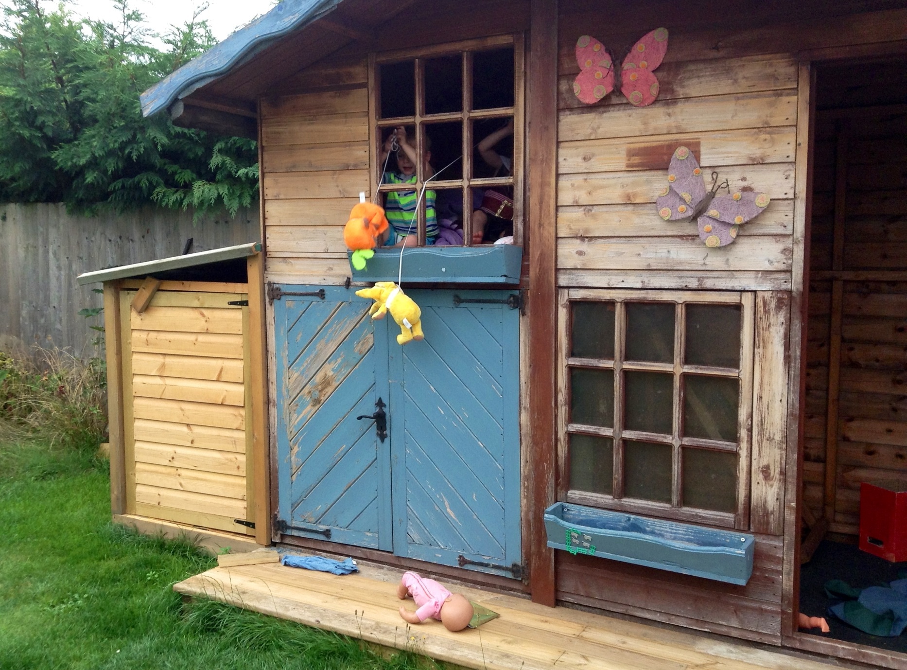 Normally my daughter ignores her friend and plays with the baby, leaving my son to be the gentleman. But the baby was going through a Mummy-or-bust phase and, instead of being upset, my gorgeous daughter went and played with the others. They were quiet. For a whole hour. We kept checking on them but they were squirreled away in the top of the playhouse.