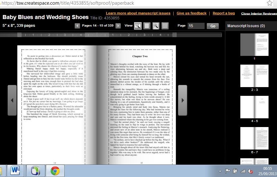 I got Baby Blues back from her today and I’m too scared to open the document. From the sample I’ve seen already, I have quite a lot of work to do! I know it took longer than she expected, so I anticipate her fee may increase significantly for the next one! 🙂