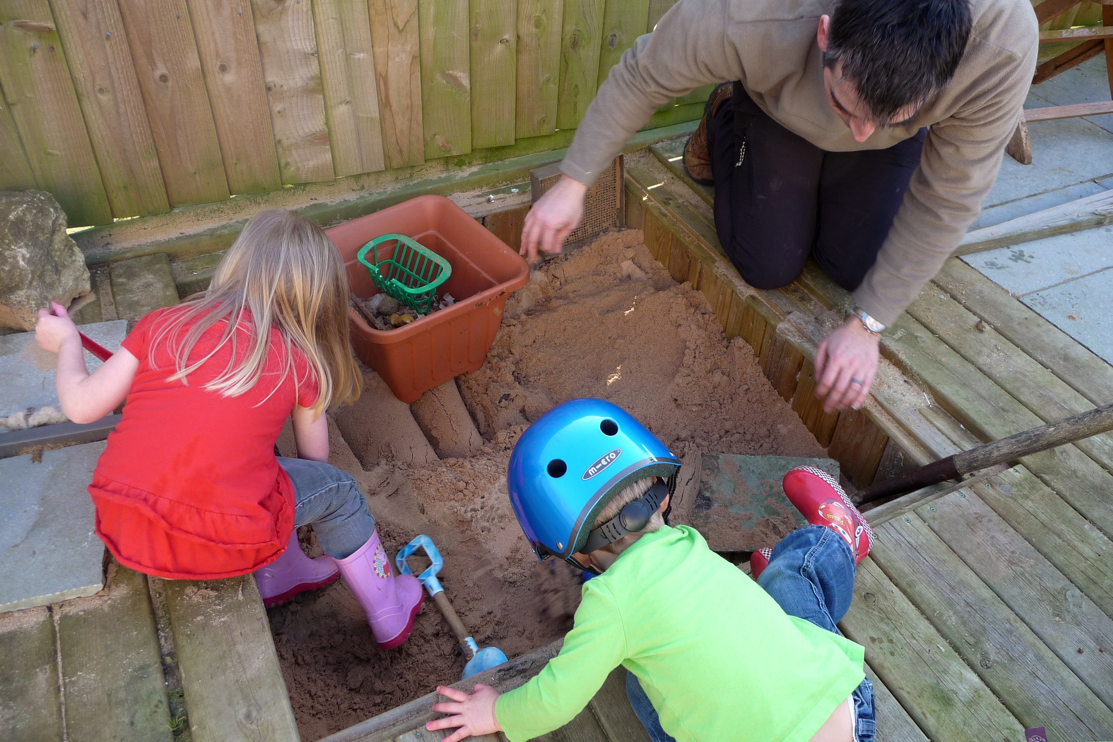 We have a sandpit in our decking so that was cleaned, removing leaves and other detritus, so the kids could use it. It’s in the shade but they didn’t care.